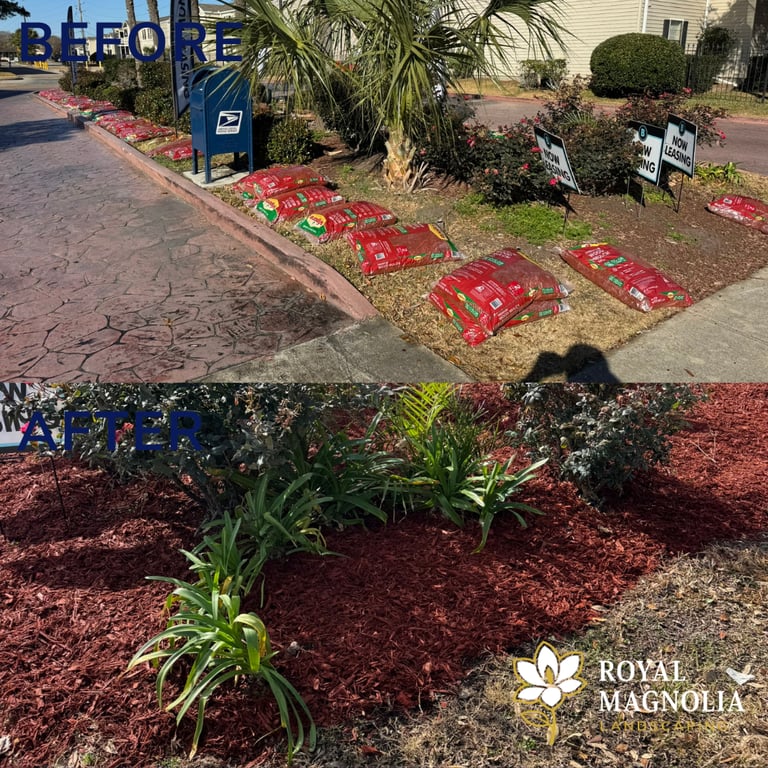 Mulch is one of the most powerful and cost-effective tools in professional landscape maintenance. It suppresses weeds, retains soil moisture, regulates soil temperature, and gives every planting bed and tree ring a clean, finished look. Royal Magnolia Landscaping provides professional mulching services for homeowners, HOAs, and commercial properties.
